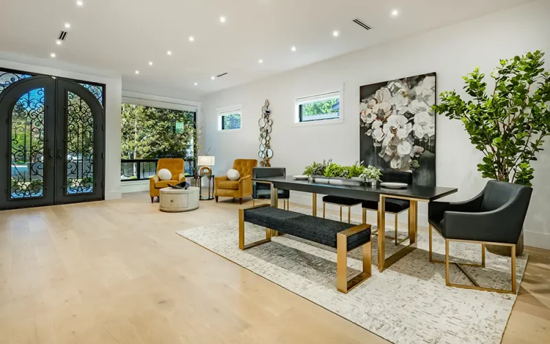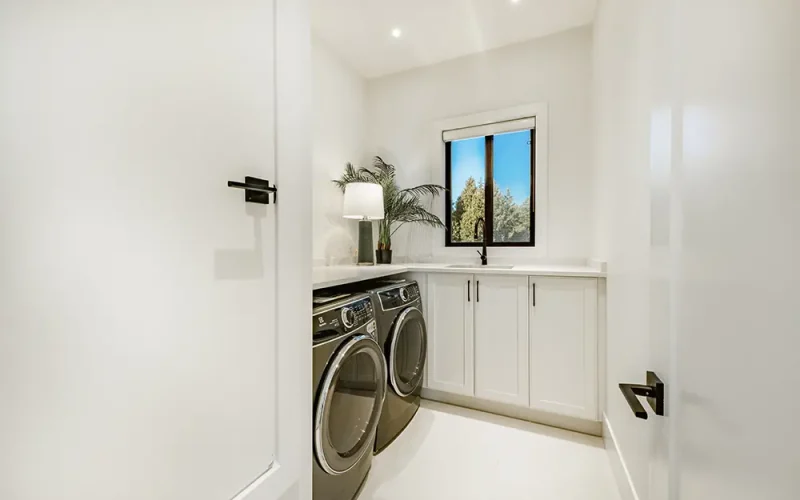 Drive into your private gated driveway and enter a home filled with modern luxuries, complete with chef’s kitchen that includes a 60-inch Wolf double range and Thermador Appliance Package – with a spacious second prep kitchen. You’ll love having four upstairs bedrooms each with their own ensuite plus for added convenience the laundry room is also upstairs.