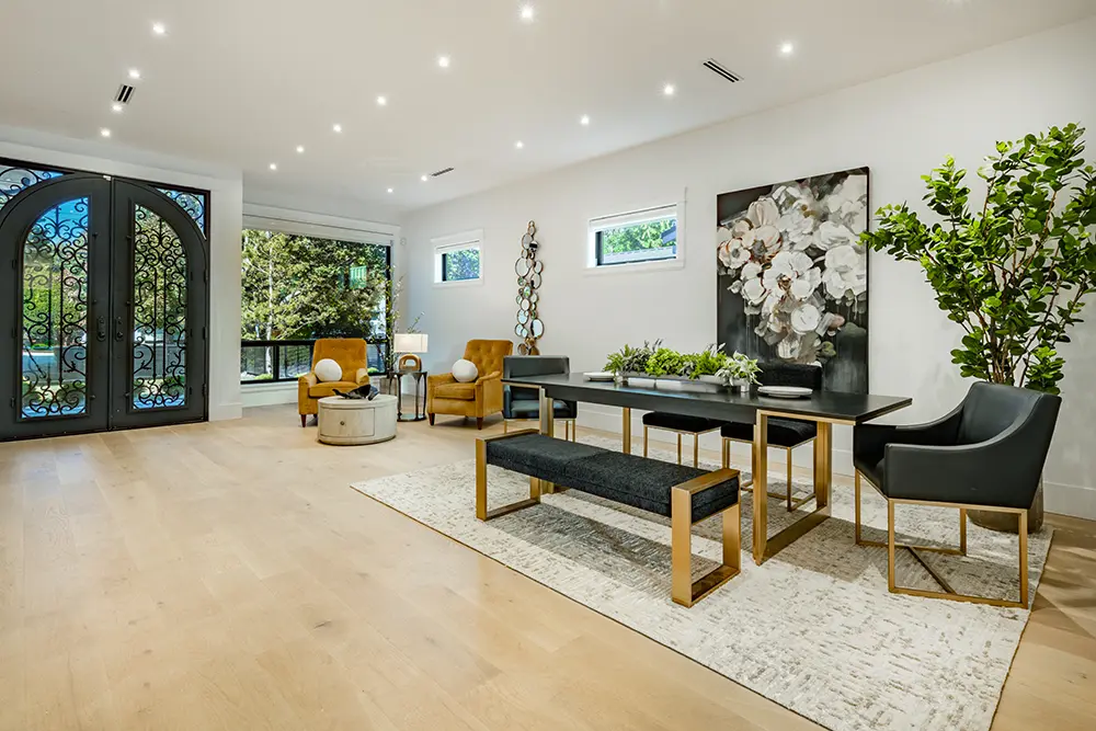 Drive into your private gated driveway and enter a home filled with modern luxuries, complete with chef’s kitchen that includes a 60-inch Wolf double range and Thermador Appliance Package – with a spacious second prep kitchen. You’ll love having four upstairs bedrooms each with their own ensuite plus for added convenience the laundry room is also upstairs.